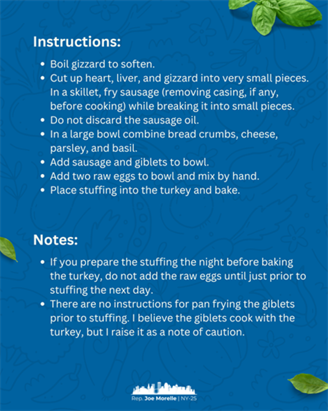 I hope everyone in our community had a great Thanksgiving surrounded by loved ones and good food. As you may have seen on my social media channels, I spent some time in the kitchen this year prepping my mom’s Italian stuffing.